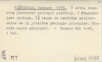 WIŚNIOWSKI Tadeusz 1915 W setną rocznicę pierwszej geologii polskiej. O Staszicu jako geologu. (Á cause du centiéme anniversaire de la premiére géologie polonaise. Staszic comme géologue).