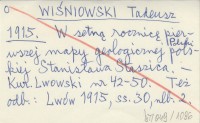 WIŚNIOWSKI Tadeusz 1915 W setną rocznicę pierwszej mapy geologicznej Polski Stanisława Staszica.