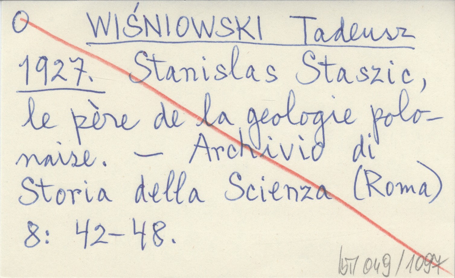 WIŚNIOWSKI Tadeusz 1927 Stanislas Staszic, le pére de la geologie polonaise.