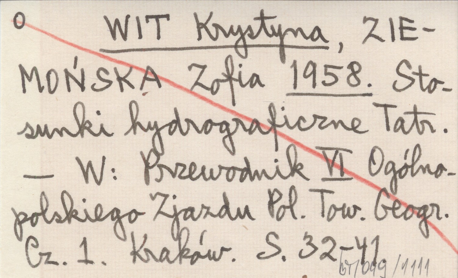 WIT Krystyna ZIEMOŃSKA, Zofia. ; 1958 Stosunki hydrograficzne Tatr.