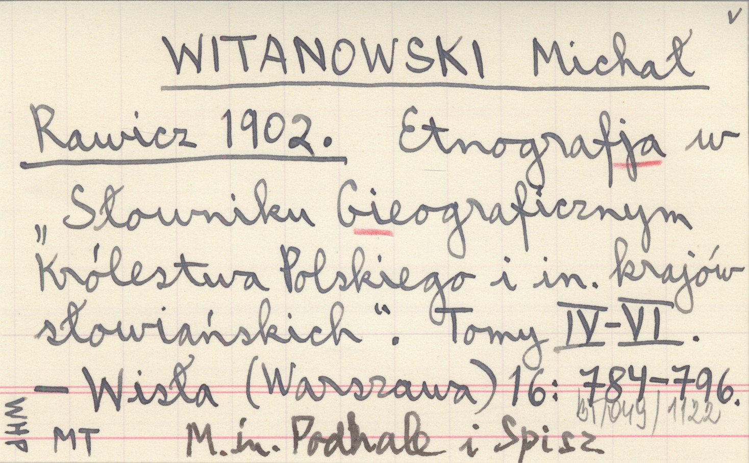 WITANOWSKI Michał Rawicz 1902 Etnografja w "Słowniku Geograficznym Królestwa Polskiego i in. krajów słowiańskich". Tomy IV-VI.