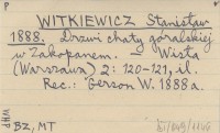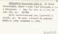 [WITKIEWICZ Stanisław] 1889 c Dr Tytus Chałubiński. Zmarł w dniu 4-ym Listopada r.b. w Zakopanem.