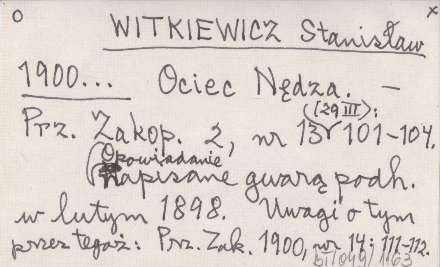 Przegląd Zakopiański, 2, nr 13 (29 III): 101-104. Opowiadanie napisane gwarą podh. w lutym 1898. Uwagi o tym przez tegoż: Prz. Zak. 1900, nr 14: 111-112.