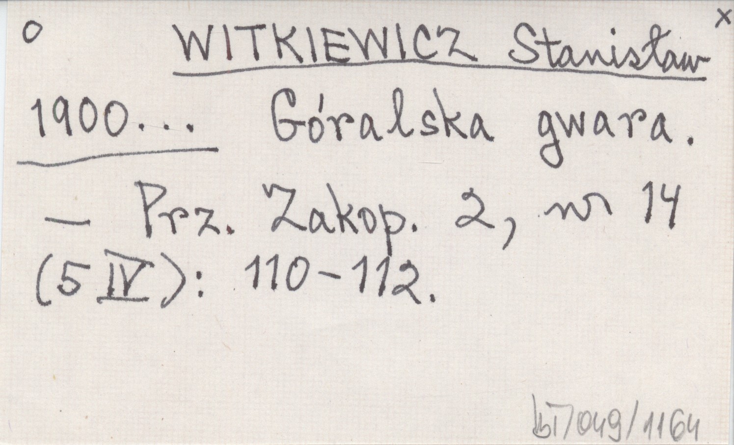 Przegląd Zakopiański, 2, nr 14 (5 IV): 110-112.