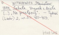 WITKIEWICZ Stanisław 1895 Opowiadanie Sabały. Spisał...