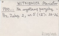 WITKIEWICZ Stanisław 1900... Na wystawę paryską.