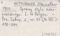 WITKIEWICZ Stanisław 1900... Sprawy stylu zakopiańskiego. I. W Paryżu.