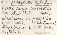 ADAMCZYK Bolesław FIREK, Adam. ; ZASOŃSKI, Stanisław. ; 1968... Mobile aluminium in mountain forest soils.