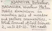 ADAMCZYK Bolesław MACIASZEK, Wiesław. ; 1969... Mobile aluminium in mountain soils of meadow and pasture communities.