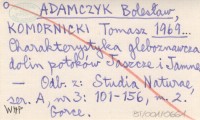ADAMCZYK Bolesław KOMORNICKI, Tomasz. ; 1969... Charakterystyka gleboznawcza dolin potoków Jaszcze i Jamne.