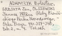 ADAMCZYK Bolesław GRESZTA, Jan. ; OLSZOWSKI, Janusz. ; 1982... Gleby Pienińskiego Parku Narodowego.