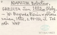 ADAMCZYK Bolesław GRESZTA, Jan. ; 1982... Gleby.