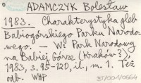 ADAMCZYK Bolesław 1983 Charakterystyka gleb Babiogórskiego Parku Narodowego.
