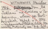 WITKIEWICZ Stanisław 1906 Dom "Pod Jedlami" na Kozińcu w Zakopanem, własn. pp. Pawlikowskich. Wybud. w r. 1896.