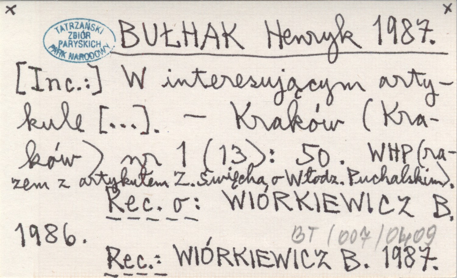 BUŁHAK Henryk 1987 [Inc.:] W interesującym artykule [...].