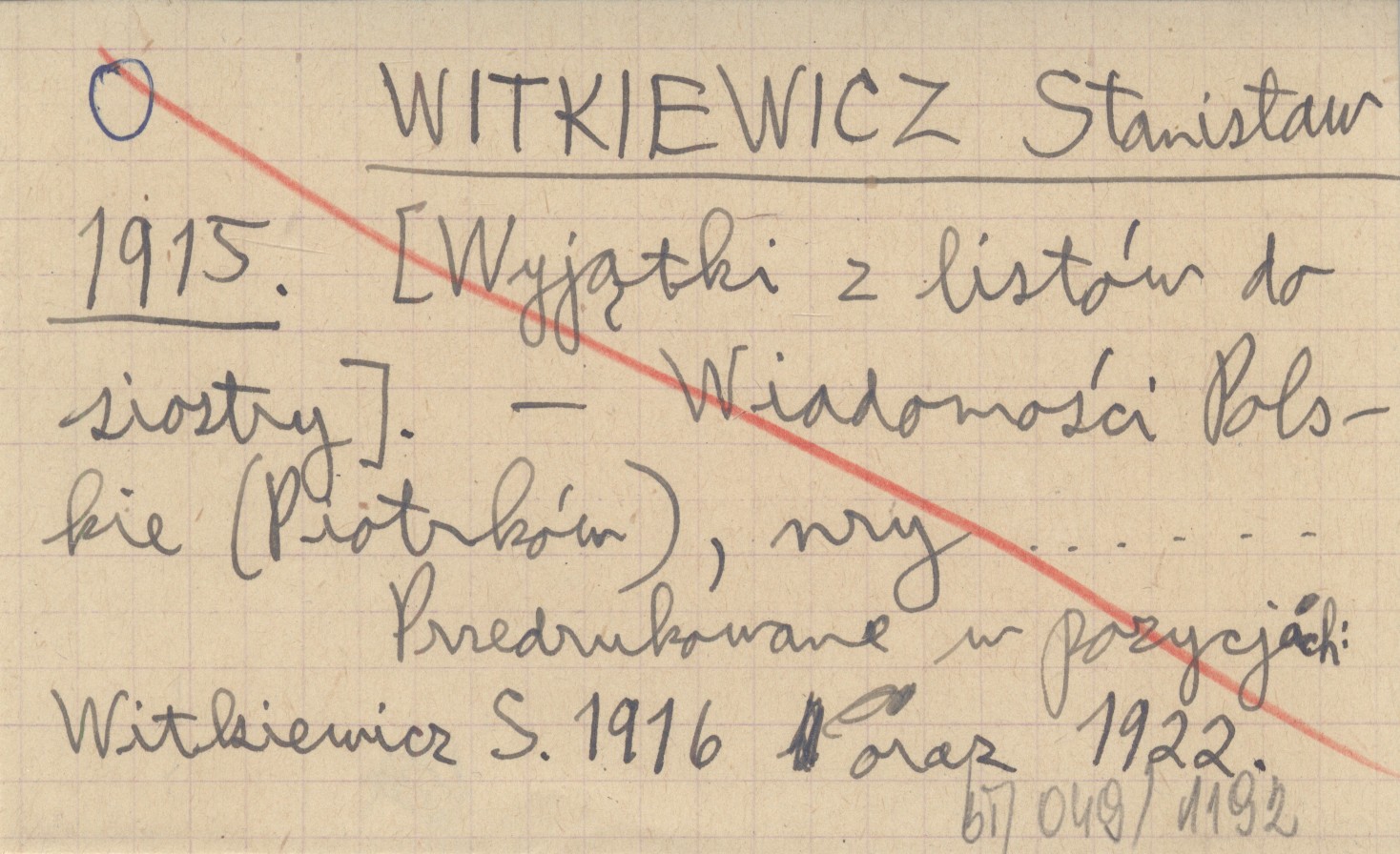 WITKIEWICZ Stanisław 1915 [Wyjątki z listów do siostry].