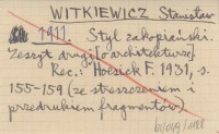 WITKIEWICZ Stanisław 1911 Styl zakopiański. Zeszyt drugi [o architekturze].