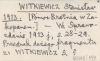 WITKIEWICZ Stanisław 1913 [Pomoc Bratnia w Zakopanem].