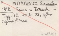 WITKIEWICZ Stanisław 1918 Zima w Tatrach.
