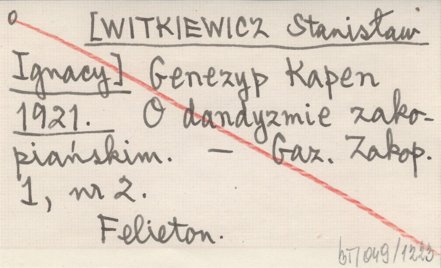 Genezyp Kapen [WITKIEWICZ Stanisław Ignacy] 1921 O dandyzmie zakopiańskim.