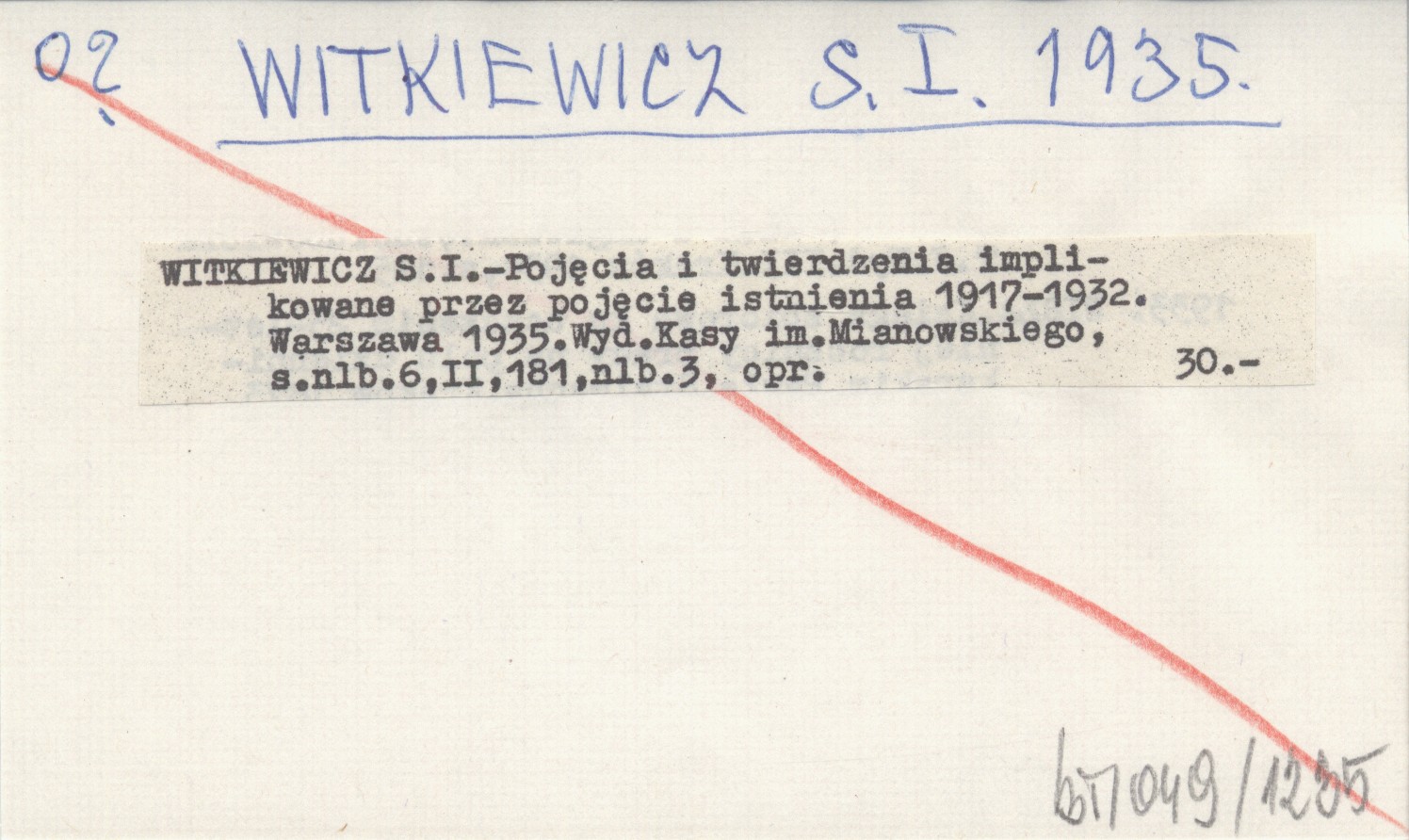 WITKIEWICZ S. I. 1935 Pojęcia i twierdzenia implikowane przez pojęcie istnienia 1917-1932.