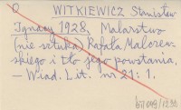 WITKIEWICZ Stanisław Ignacy 1928 Malarstwo (nie sztuka) Rafała Malczewskiego i tło jego powstania.