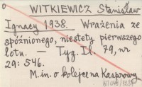 WITKIEWICZ Stanisław Ignacy 1938 Wrażenia ze spóźnionego, niestety pierwszego lotu.