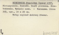 WITKIEWICZ Stanisław Ignacy 1957 Nienasycenie. Powieść. Część pierwsza. Przebudzenie. Wydanie nowe.
