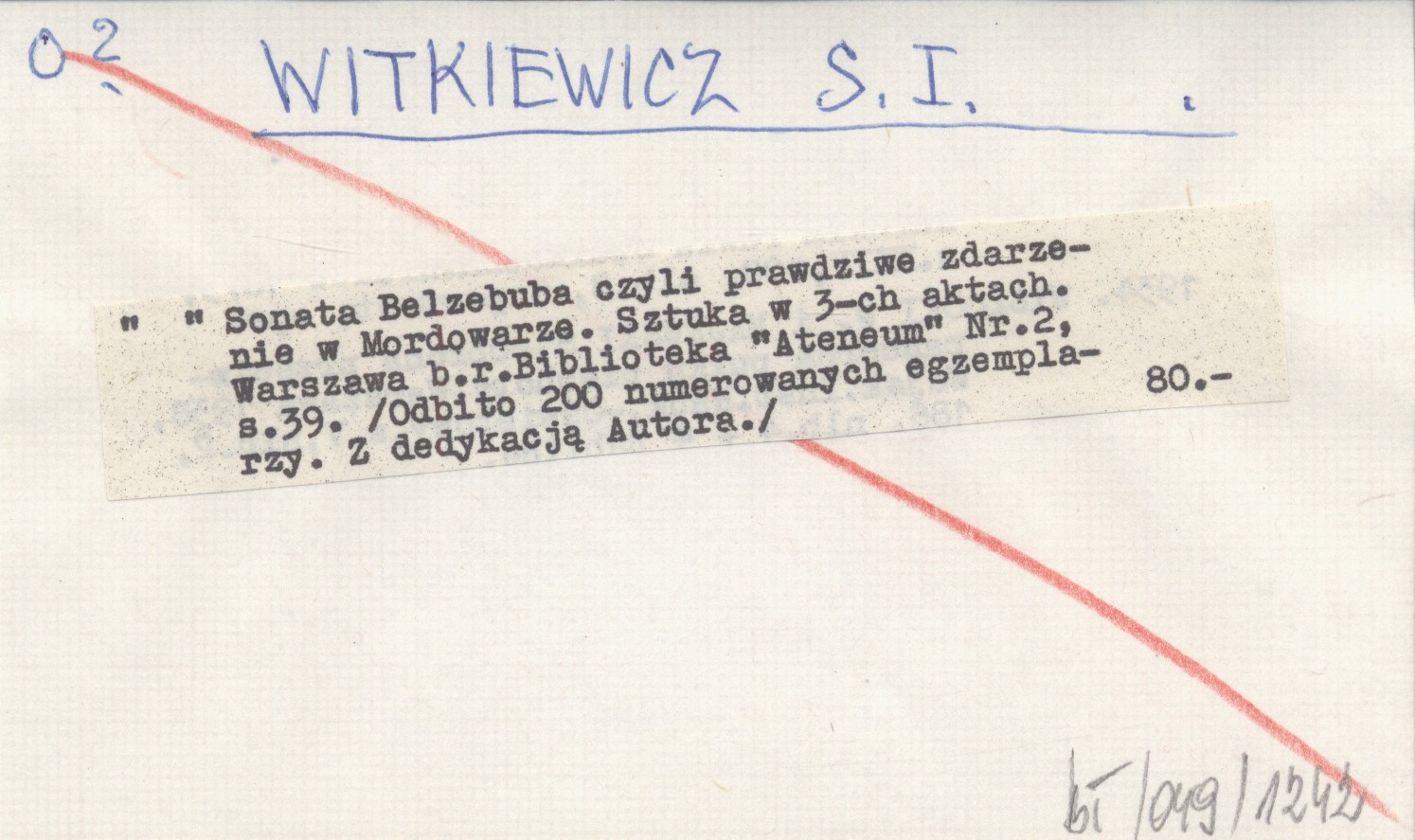 WITKIEWICZ S. I. Sonata Belzebuba czyli prawdziwe zdarzenie w Mordowarze. Sztuka w 3-ch aktach.