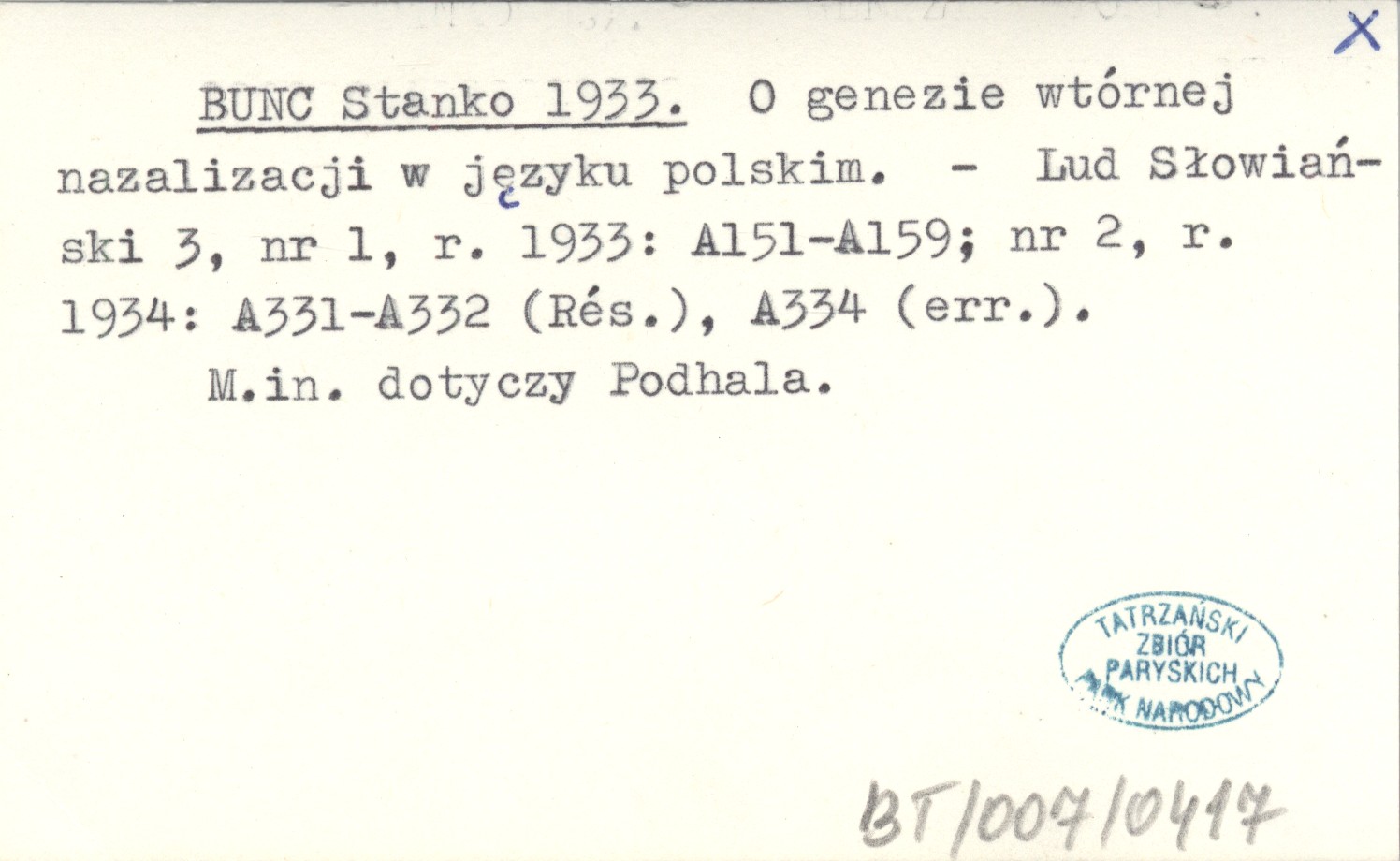 BUNC Stanko 1933 O genezie wtórnej nazalizacji w języku polskim.