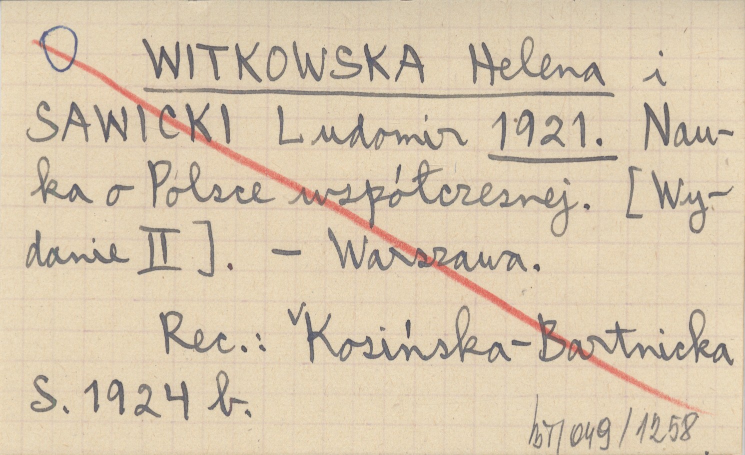 WYD: 2 Warszawa , REC: KOSIŃSKA-BARTNICKA S. 1924 b