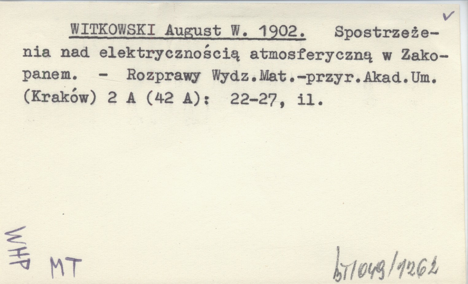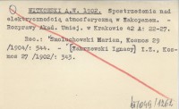 WITKOWSKI August W. 1902 Spostrzeżenia nad elektrycznością atmosferyczną w Zakopanem.