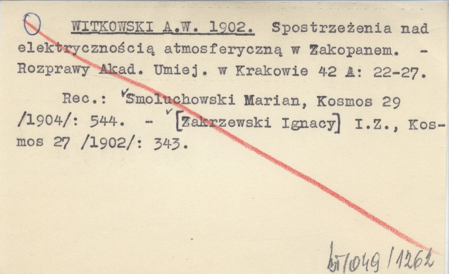 Rozprawy Wydziału Matematyczno-przyrodniczego Akademii Umiejętności (Kraków) , 2 A (42 A): 22-27, il. REC: SMOLUCHOWSKI Marian, Kosmos 29 (1904): 544 ; [ZAKRZEWSKI Ignacy] I.Z., Kosmos 27 (1902): 343 ;