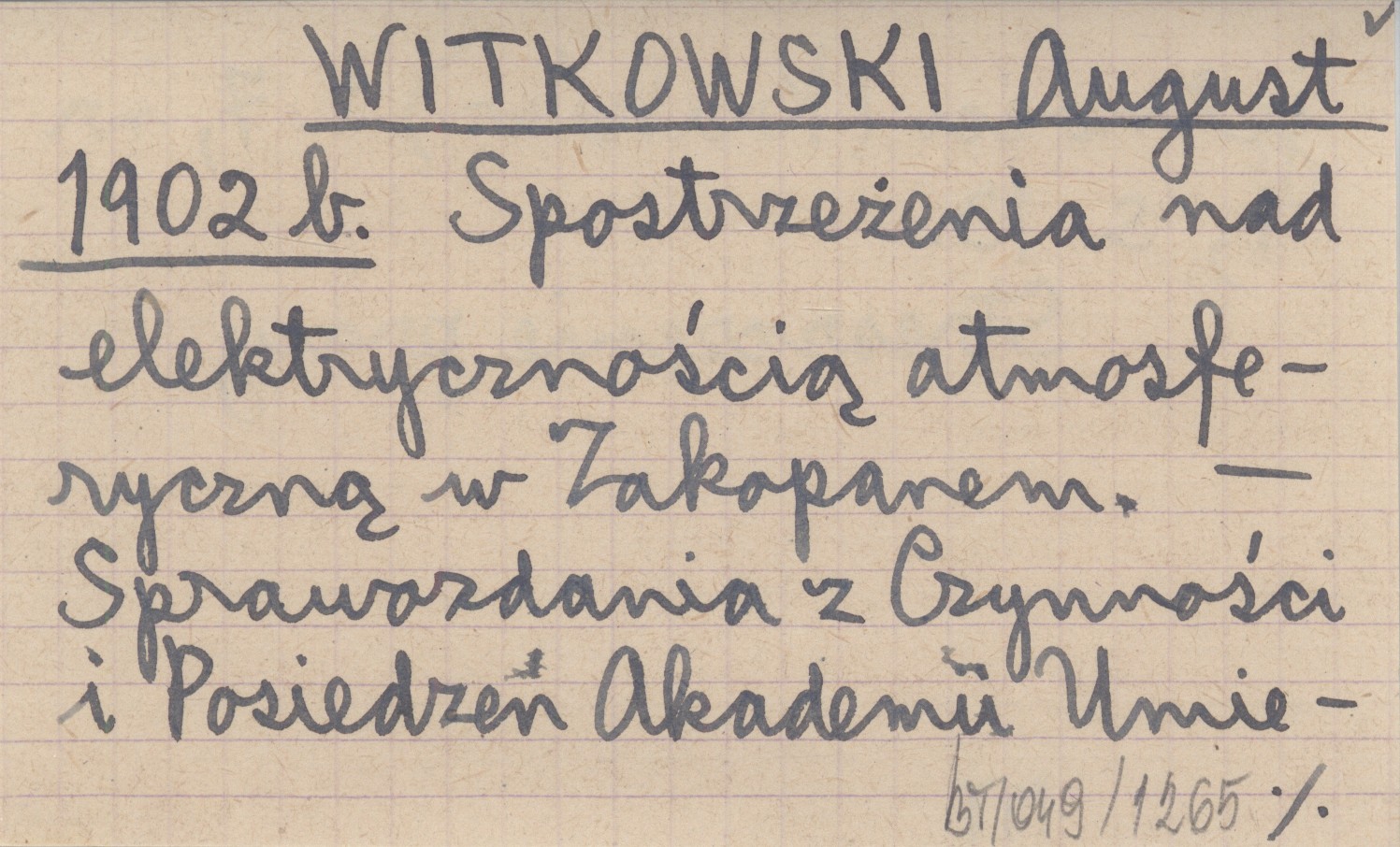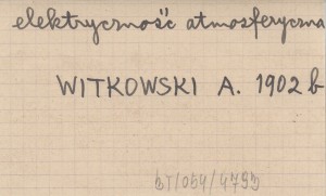 WITKOWSKI August 1902 b Spostrzeżenia nad elektrycznością atmosferyczną w Zakopanem.