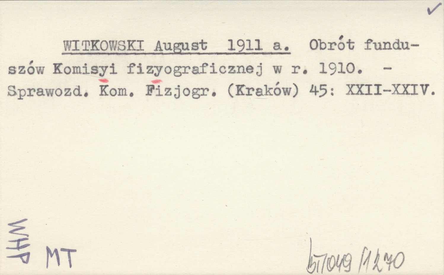 WITKOWSKI August 1911 a Obrót funduszów Komisyi fizyograficznej w r. 1910.