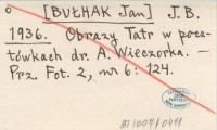 J. B. [BUŁHAK Jan] 1936 Obrazy Tatr w pocztówkach dr. A. Wieczorka.