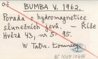 BUMBA V. 1962 Porada o hydromagnetice slunečních jevů.