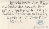 BUNDESMANN Anton 1812... Am Grabe des Samuel Bredetzki, Predigers der evangelischen Gemeinde zu Lemberg.