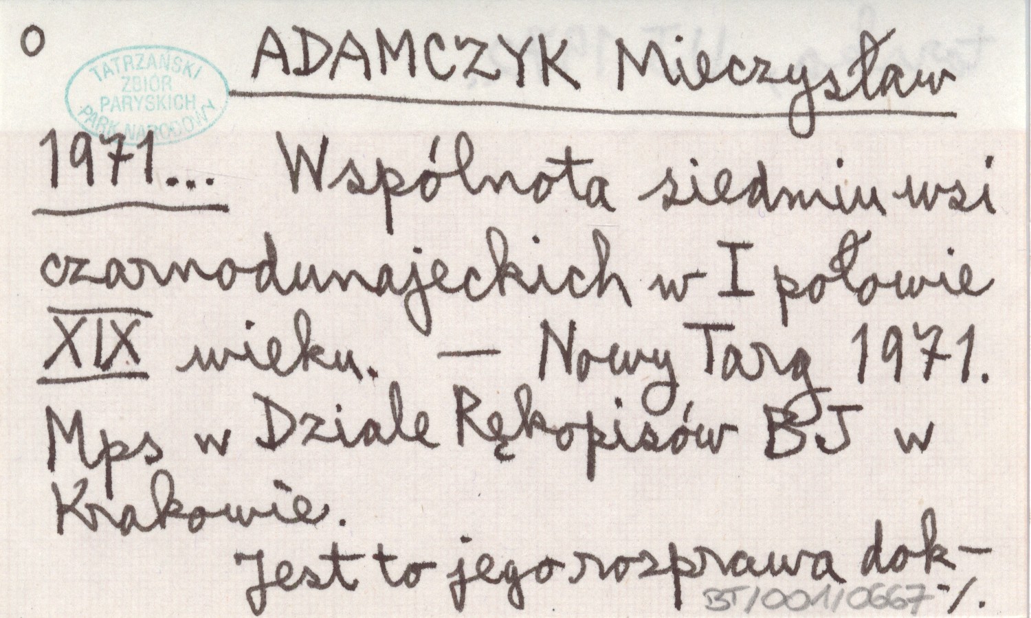 ADAMCZYK Mieczysław 1971... Wspólnota siedmiu wsi czarnodunajeckich w I połowie XIX wieku.
