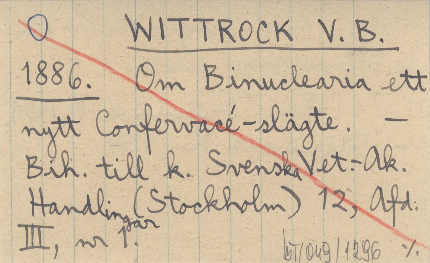 WITTROCK V. B. 1886 Om Binuclearia ett nytt Confervacé-slägte.
