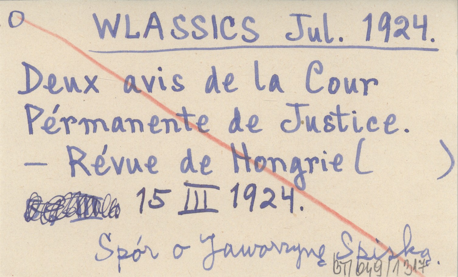 WLASSICS Jul. 1924 Deux avis de la Cour Pérmanente de Justice.