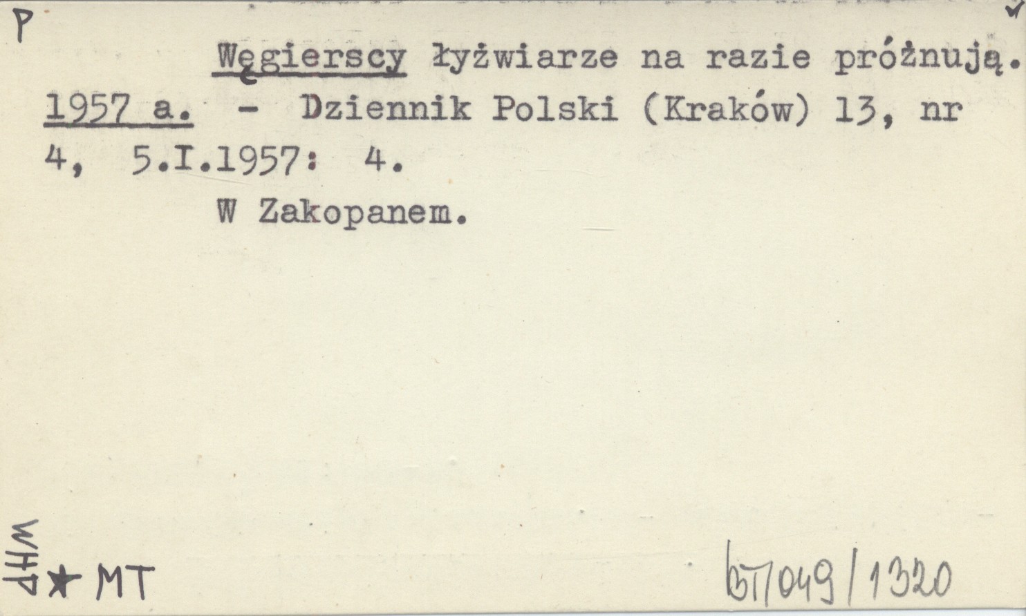 Dziennik Polski (Kraków) , 13, nr 4, 5 I 1957: 4. W Zakopanem.