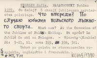 WĘGRZYN Zofia MAŁACHOWSKI, Bohdan. ; 1957 Co dalej? Z okazji jubileuszu narciarstwa polskiego. Čto vperedi? Po clyčaju jubileja pol'skogo lyžnogo spotra. What now? At the Occasion of the Jubilee of Polish Skiing. Et aprés? Le Jubilé de ski en Pologne.