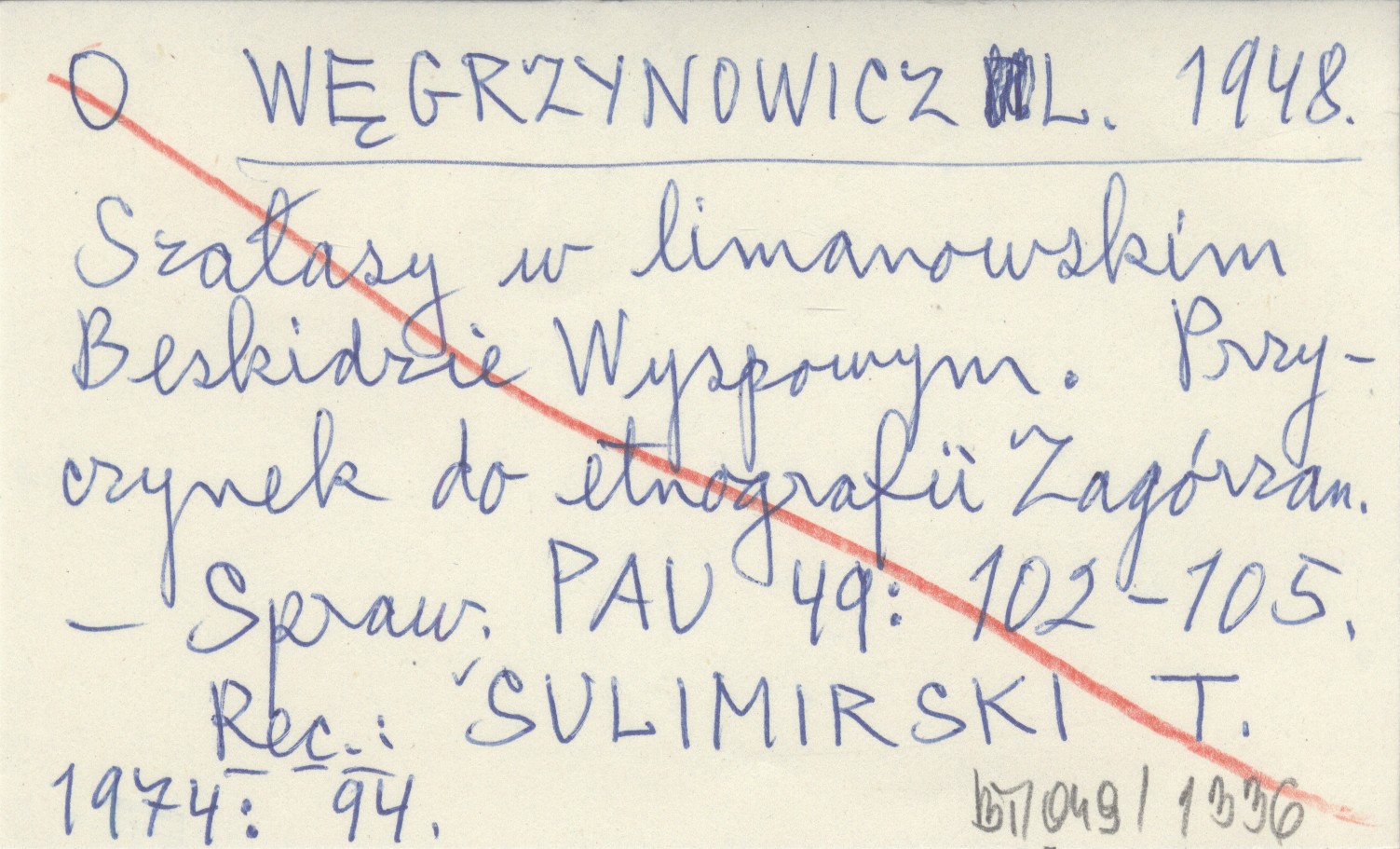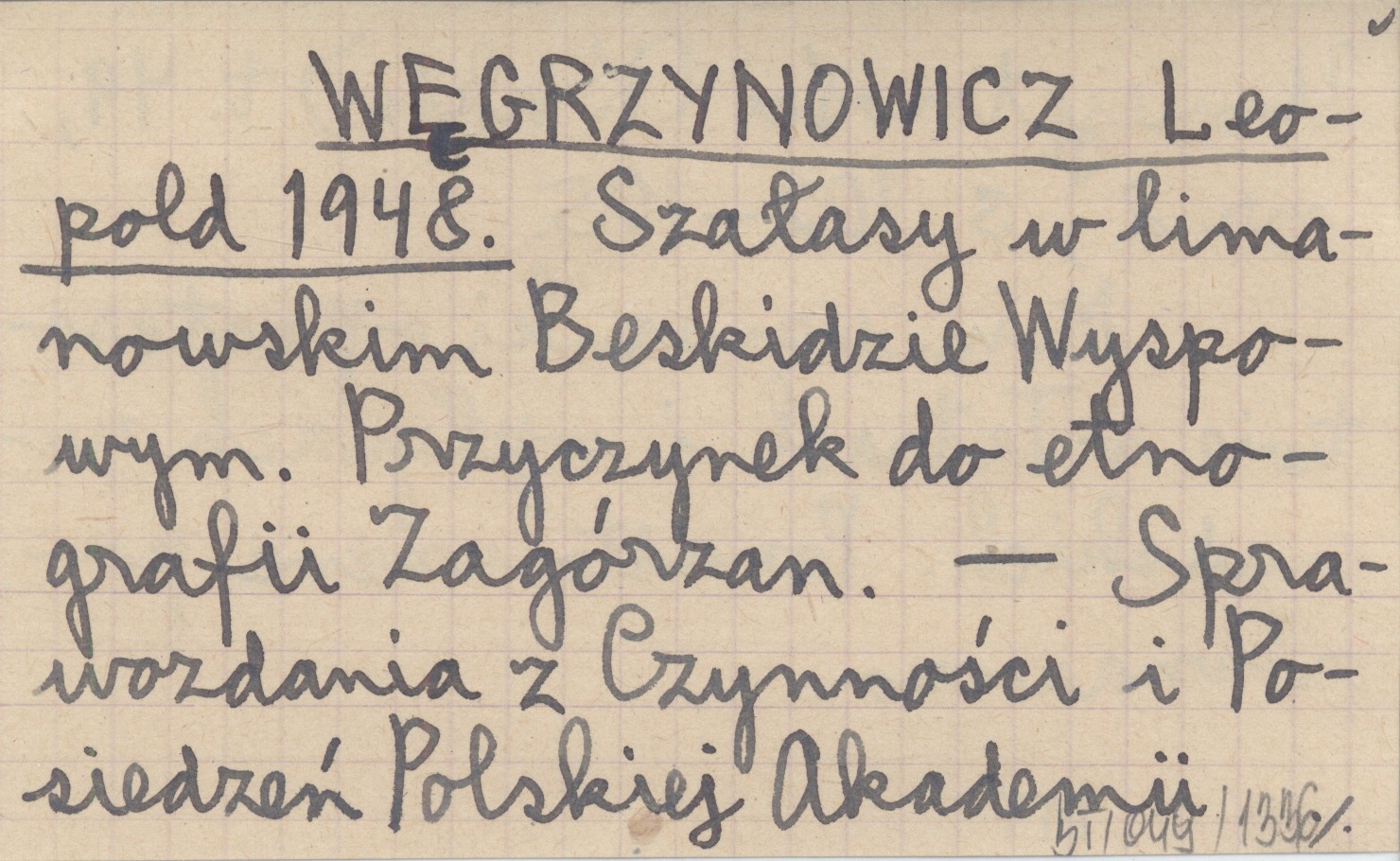 WĘGRZYNOWICZ Leopold 1948 Szałasy w limanowskim Beskidzie Wyspowym. Przyczynek do etnografii Zagórzan.