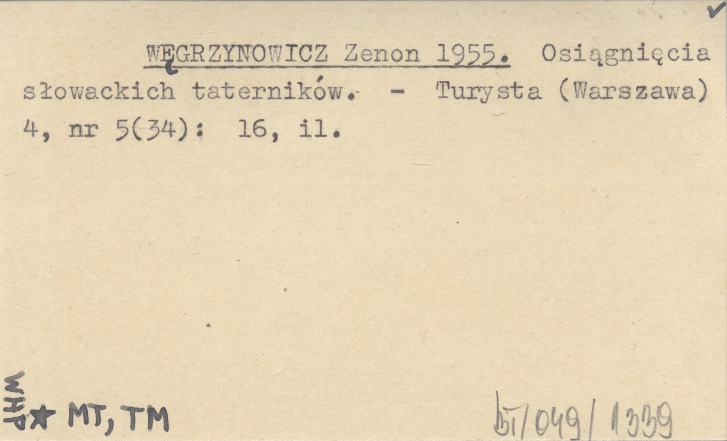 WĘGRZYNOWICZ Zenon 1955 Osiągnięcia słowackich taterników.