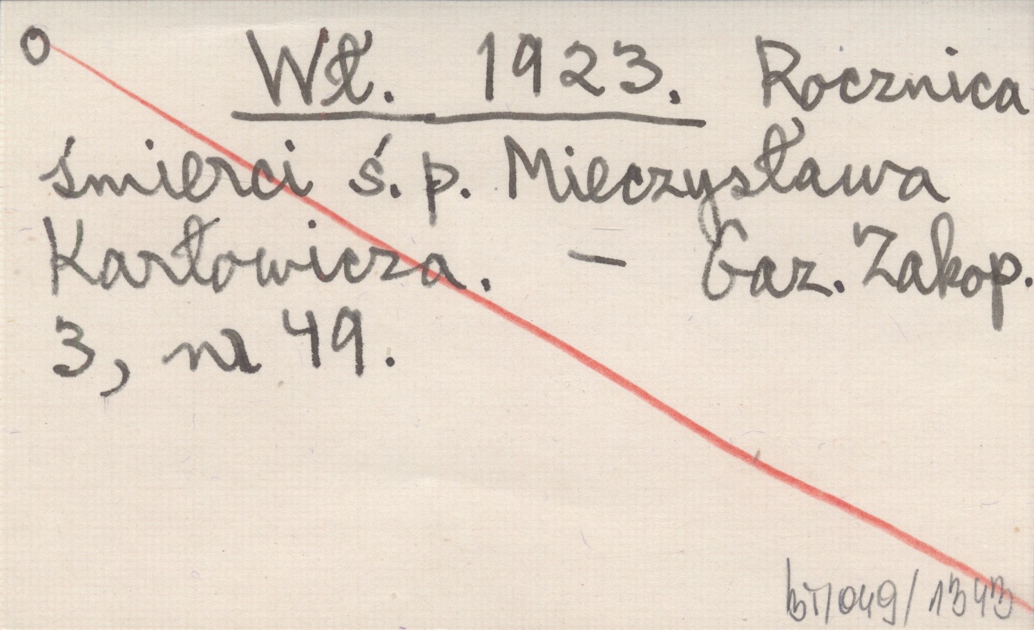 Wł. 1923 Rocznica śmierci ś. p. Mieczysława Karłowicza.
