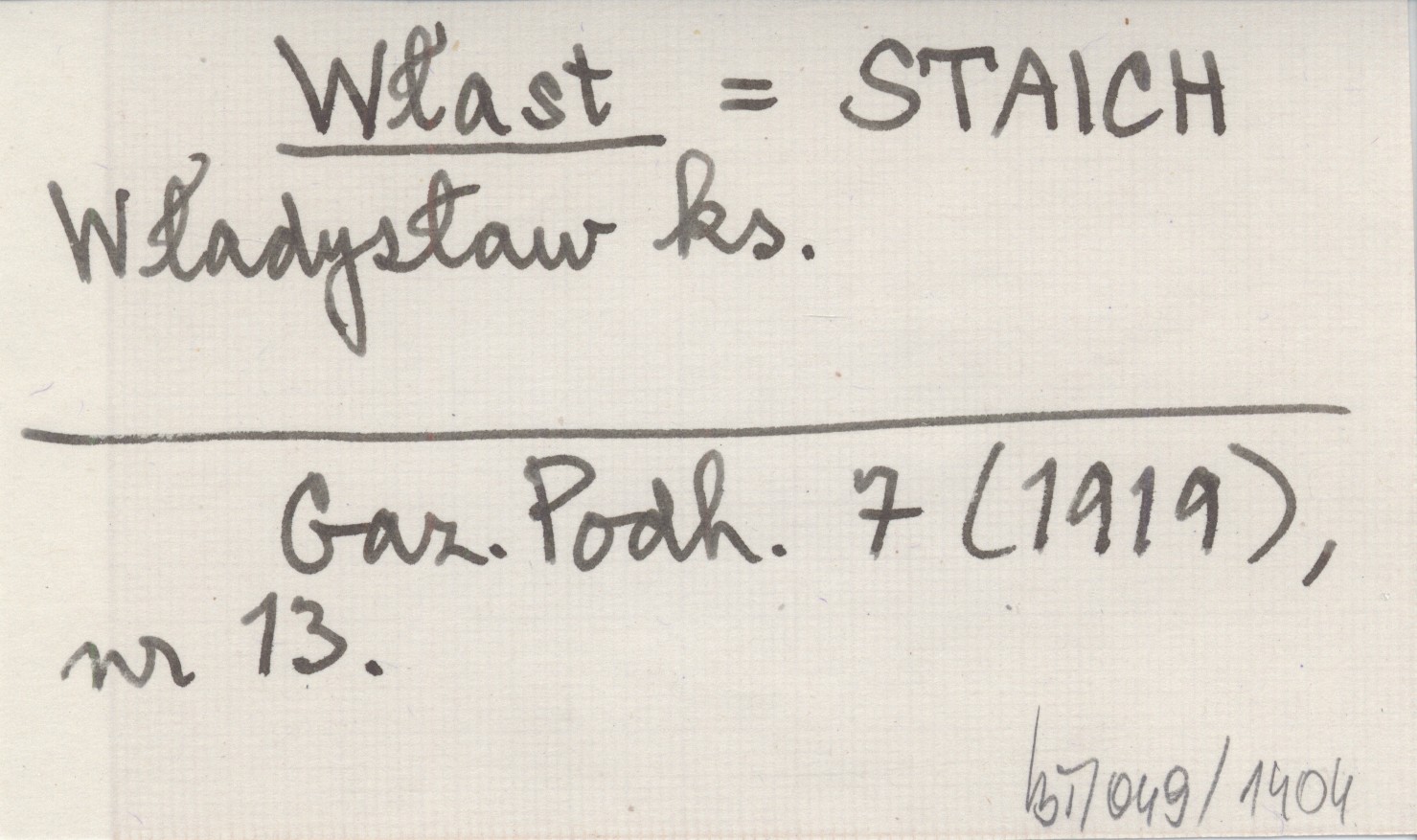 Włast STAICH Władysław ks. Gazeta Podhalańska 7 (1919), nr 13.