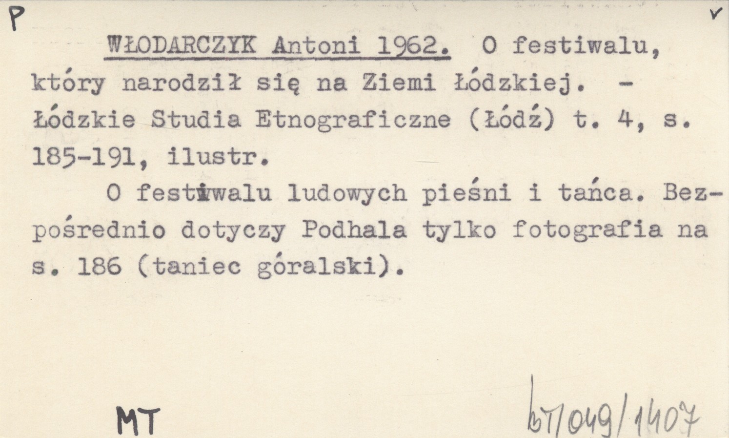 Łódzkie Studia Etnograficzne (Łódź) , T. 4: 185-191, il. O festiwalu ludowych pieśni i tańca. Bezpośrednio dotyczy Podhala tylko fotografia na s. 186 (taniec góralski).