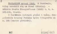 WŁODARCZYK Antoni 1962 O festiwalu, który narodził się na Ziemi Łódzkiej.