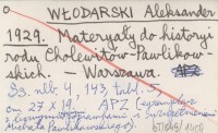 WŁODARSKI Aleksander 1929 Materyały do historyi rodu Cholewitów-Pawlikowskich.